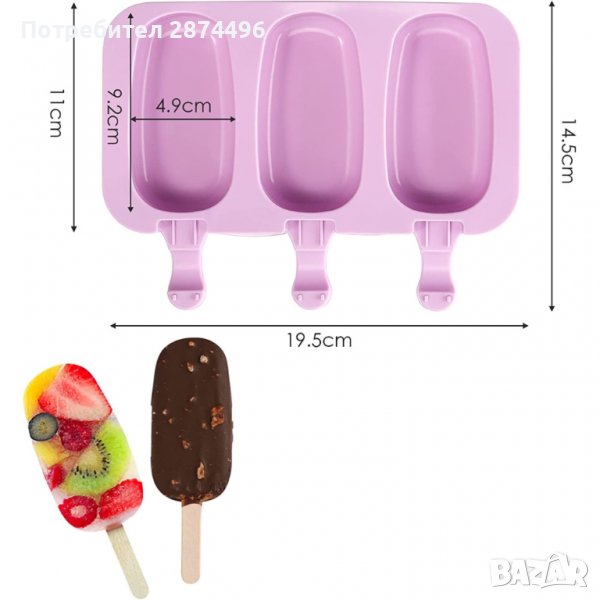 Размер на формите за сладолед:9.2 х 4.9 см.