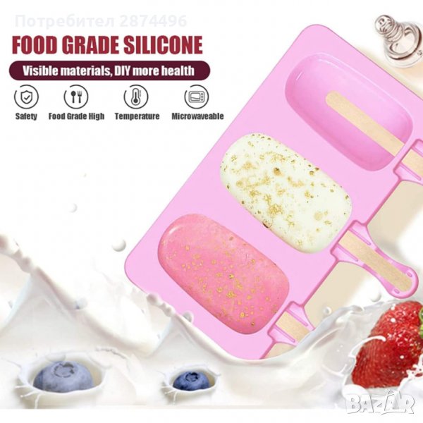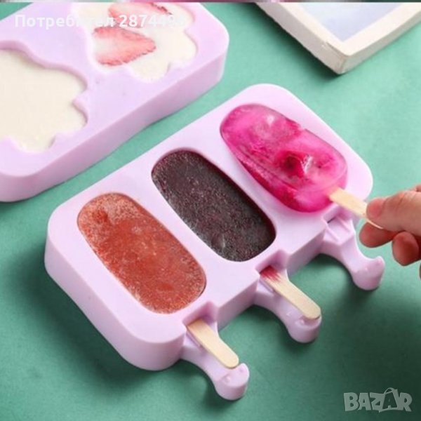 Силиконова форма за 3бр овални сладоледа-1бр.