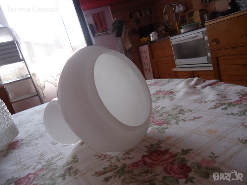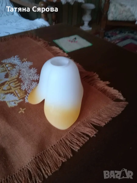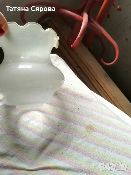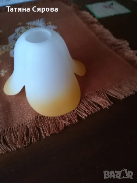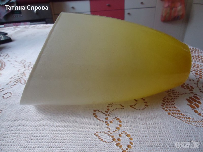 Резервни стъкла за полюлей: БЕЛИ: 1 стъклото е чукнато, вижда се на последната снимка. Размери: горен отвор 9 см/той е без значение/, долен отвор 11 см и височина 15 см.