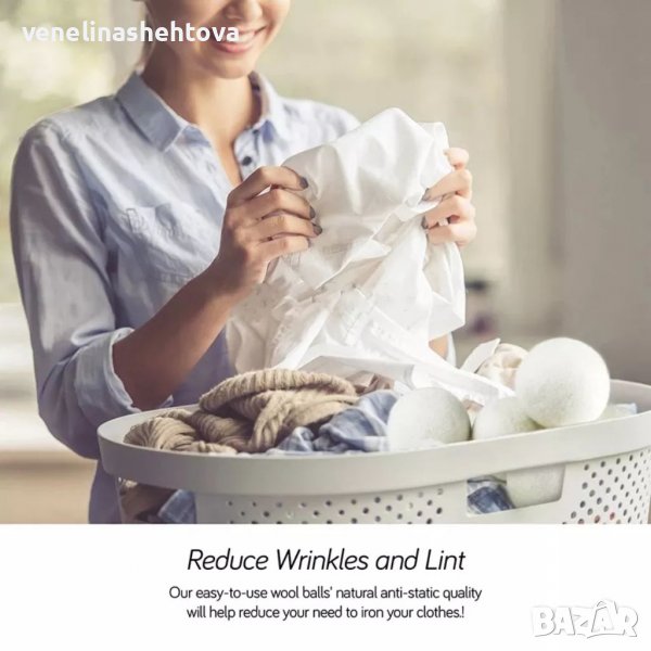 Комплект 6 броя топки за сушилня от новозеландска вълна, която прави прането ви по-меко и гладко без омекотител.