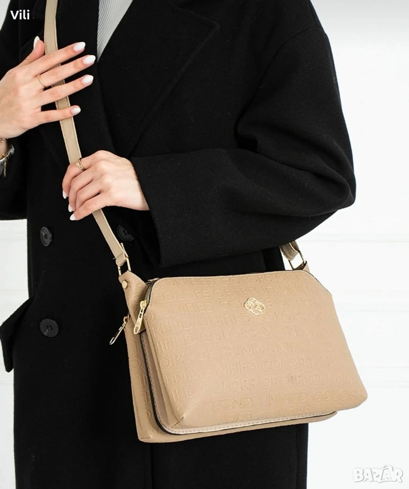 Ежедневна дамска чанта от еко кожа с много отделения в черно и бяло → Обява 39018120