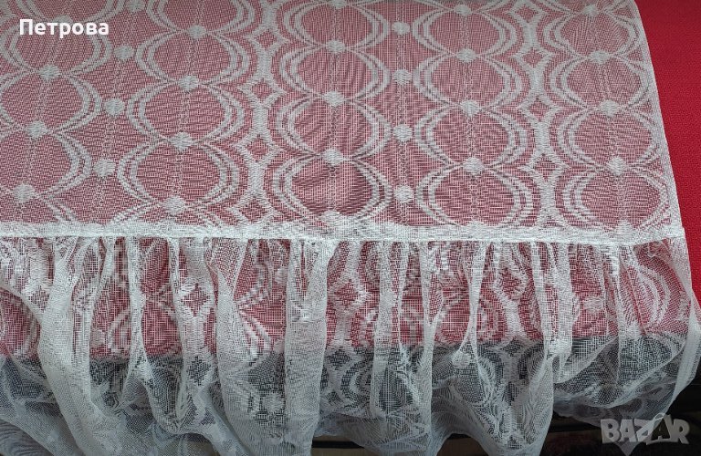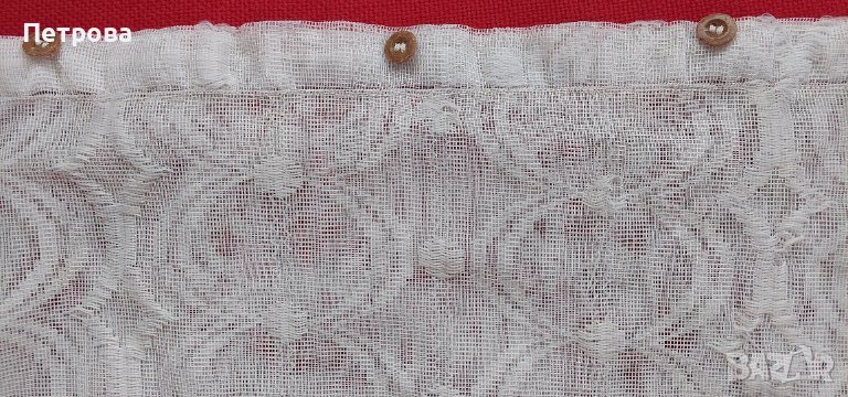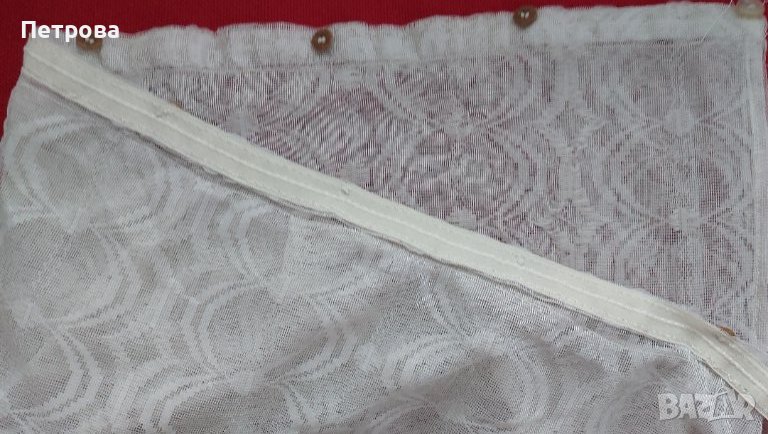 Дълга завеса бяла, прозрачна, с красиви бели орнаменти, запазена, готова за окачване, перделък с копчета, дължина 180 см, ширина 135 см. Цена 10 евро. Изпраща се с 10% отстъпка от общоприетата куриерска такса.