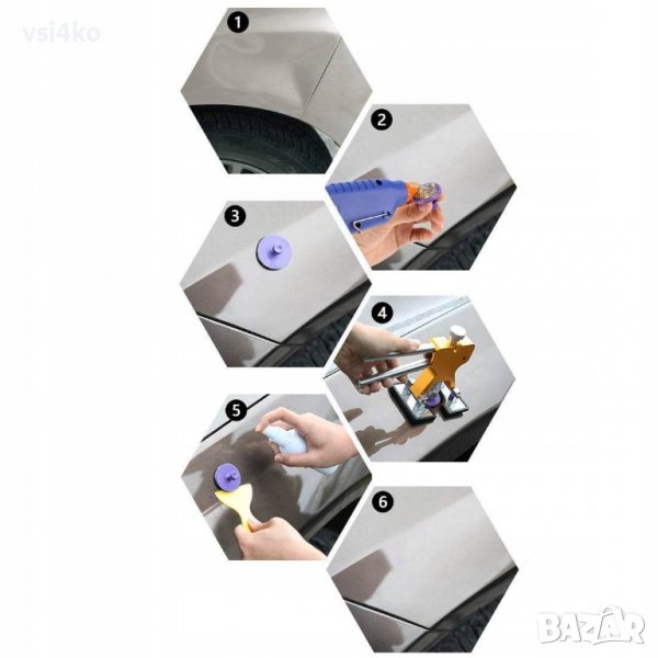 Имахте удар? Някой е повредил колата ви, като е вдлъбнал броня, врата или друг елемент? Грешка при паркиране? Вече не е нужно да харчите допълнителни пари за посещение в специализиран сервиз. Благодарение на системата за цялостно премахване на вдлъбнатини, Вие можете сами да ремонтирате каросерията на вашия автомобил, като премахнете всички малки вдлъбнатини.Направи си сам!