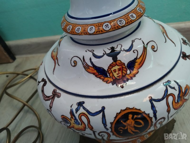 барокова настолна лампа,порцеланов корпус,ръчно декориран с месингов обков.работи.