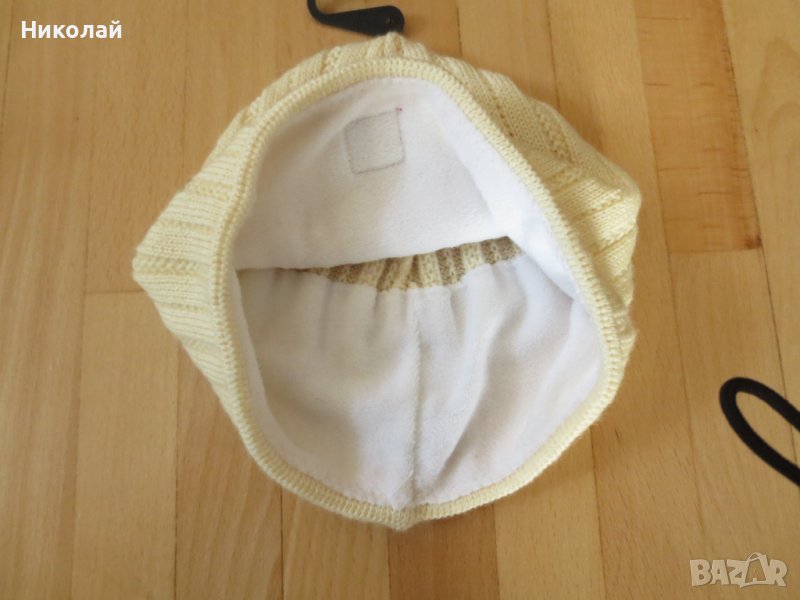 100%вълна .От вътрешната страна е допълнително подплатена с мека поларена подплата за допълнително топлина и мекота в усещането на материята. обиколка е основата е 46см.