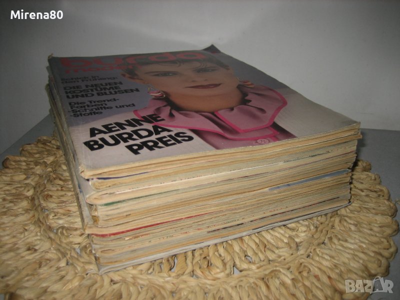 Легендарното списание БУРДА на Ане Бурда - който е гледал филма за тази велика жена, знае колко и е коствало да създаде списание за шиене в следвоенна Германия, което да стане списание - икона ! Било всички рекорди за продажби, символ на модерната, независима германка. Всички списания са здрави, с кройките вътре, от 1982 до 1996 г. Разполагам с 30-тина бройки.