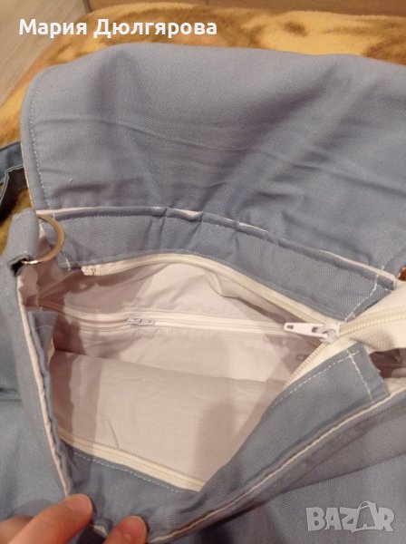 Синята е хендмейд, има визитка и торбичка към нея, много здрава. Става за подарък. Чисто нова е в оригинална торбичка
