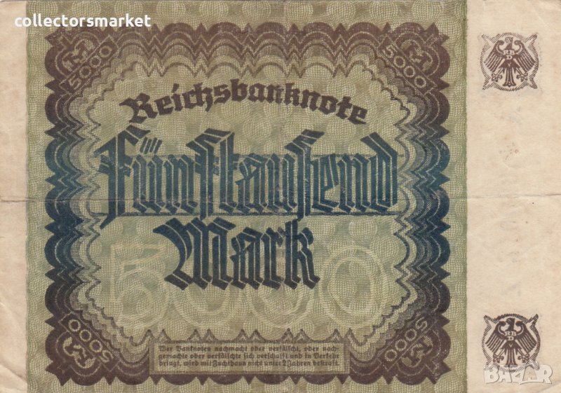 5000 марки 1922, Германия, снимка 1 - Нумизматика и бонистика - 39035890 5000 марки 1922, Германия, снимка 2 - Нумизматика и бонистика - 39035890 1/2