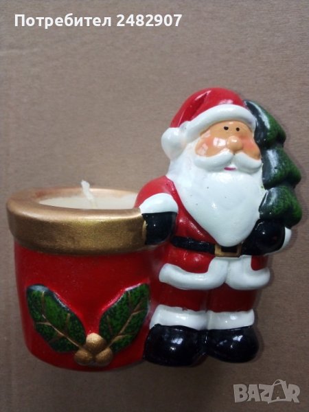 Много стара коледна свещ. Нова, не е използвана. Ширина в долната част - 9 см, височина на дядо Коледа - 11 см. Много красива, керамична.