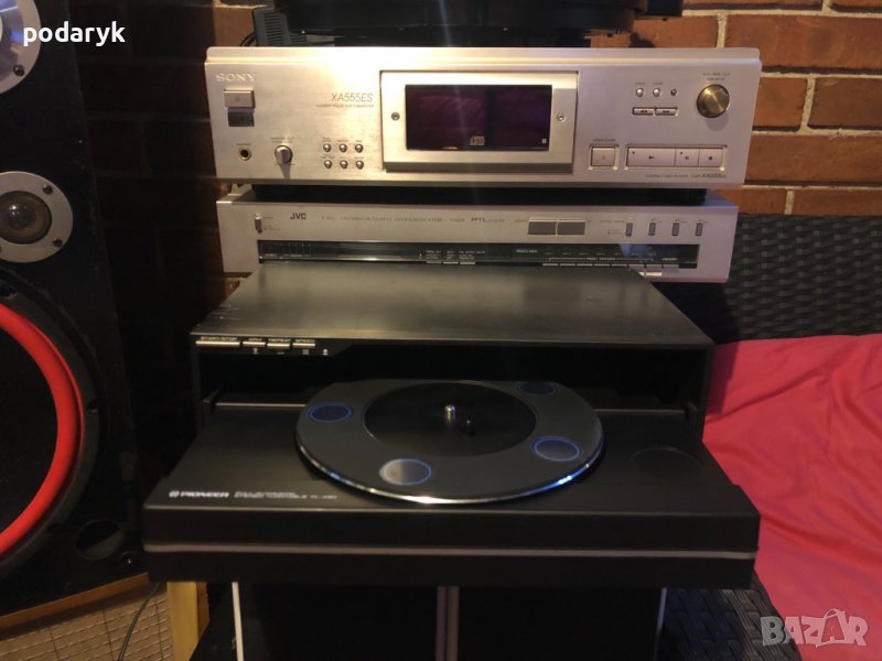 SONY CDP-XA 555ES – High-End CD Player Champagne incl. , 2J Warranty Един от най добре свирещите плейъри на фирмата.Шампански красавец с дак – CXD8762Q – CXD9521Q – CXA8042AS. Оптика – KSS-273B. Чете и презаписани дискове. Захранване с три отделни трафа – аналог,дигитал и серво. Сменен захранващ кабел с по добър и сфазиран. Фиксиран и регулируем изход. Цифрови изходи – coaxial, optical с възможност за изключване за по добър звук. Размери – 430 x 126 x 375mm. Тегло – 13.2kg. Перфектен технически и визуално без забележки . Цена като нов шампански – (UVP, Champagner) / 1.300 €Ще дам на гигантските японски конгломерати едно нещо: те правят своите CD плейъри като Humvee. Sony CDP-X555ES ($900) излъчва гордост от притежанието; от симулираните странични панели от дърво до медно екранираното шаси, Sony е много впечатляващ плейър. Обикновено обаче Sony избра да съчетае много сложна дигитална секция с това, което изглежда като стандартна аналогова секция със среден клас, включваща двойни операционни усилватели Texas Instruments 5532, резистори с въглероден състав и евтини електролитни съединителни капачки. 555ES има както фиксирани, така и променливи изходи, както и оптичен изход Toslink. Няма коаксиален цифров изход.Сред многото инженерни акценти са веригата против трептене "Direct Digital Sync", цифров филтър с 8x свръхсемплиране с 45 битавътрешни регистри, отделни силови трансформатори за цифровата и аналоговата секции и звездата на шоуто: собствената 45MHz система за допълнителен линеен преобразувател с висока плътност