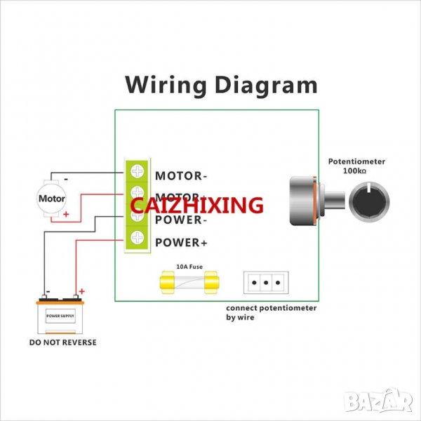 Подходящ за постоянно токови двигатели с номинален ток 8A, пиков ток 10A.