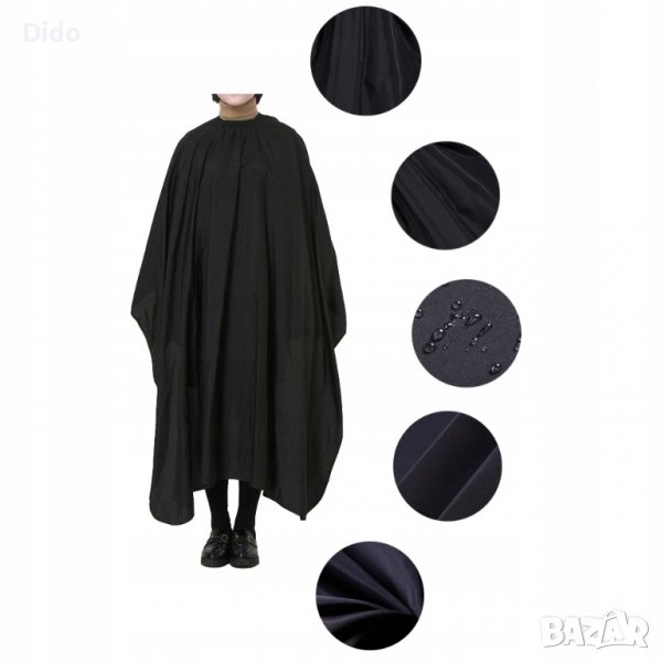Бръснарската пелерина, изработена от найлон, е основен инструмент за всеки фризьор. Предпазва кожата и дрехите от боя за коса и други вредни вещества, като поддържа дрехите ви сухи и чисти. Пелерината е влагоотблъскваща и може да се пере в пералня.