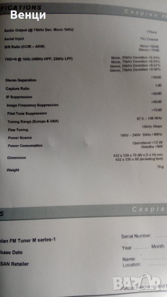 Спецификации за ROKSAN CASPIAN SERIES AV POWER AMP
