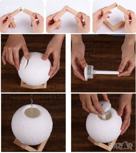 Овлажнител на въздуха с формата на луна съчетан с LED лампа.