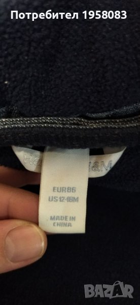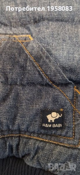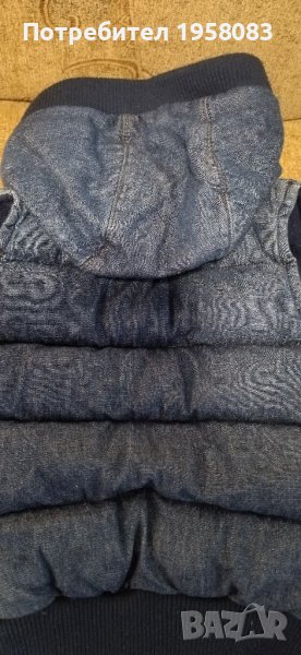 Бебешки ватиран елек с качулка - H&M, размер 86, цвят деним → Обява 39046554