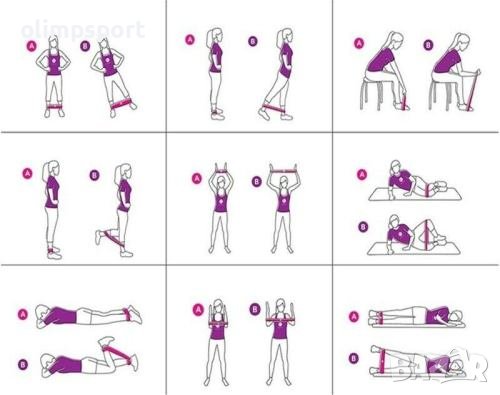 Фитнес ластици, 3 броя в комплект. Ластични ленти в кръг с обиколка 50 - 52 см и ширина 5 см. Различна дебелина на ластиците - 0.4 мм, 0.75 мм, 1.1 мм. Подходящи за тренировки на различни групи мускули. Цената е за комплект от 3 ластика. Тегло за комплект - 60 г.