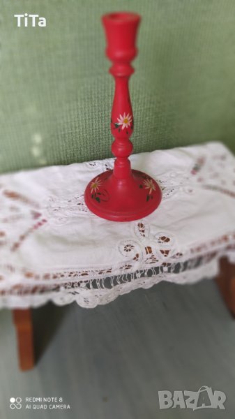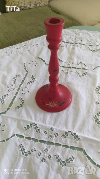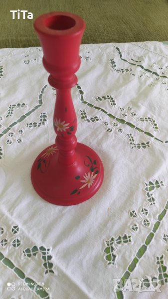 Ръчно рисуван дървен свещник в червено → Обява 39050138