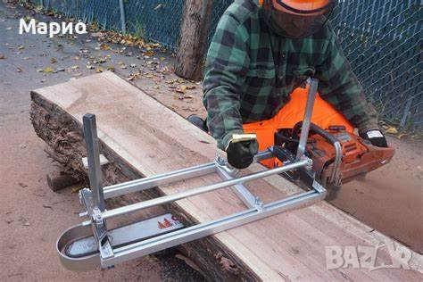Първият разрез се прави с талпа или стълба или релси, с нещо което да зададе равна повърхност на разреза и последващите разрези вече се движат по самото дърво. Това е само за първия разрез!