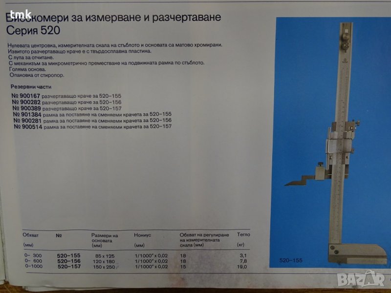 Предлагаме леко употребяван, но в отлично състояние и със запазени технически показатели, оригинален японски високомер, производство на Mitutoyo. Уредът е със следните параметри: