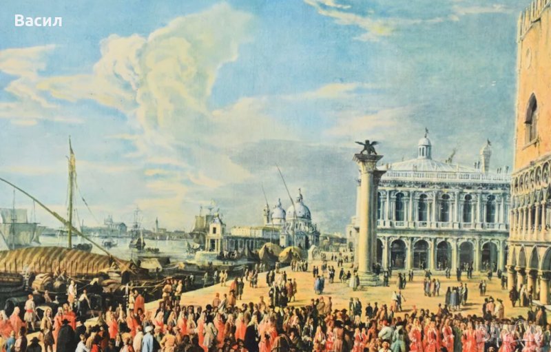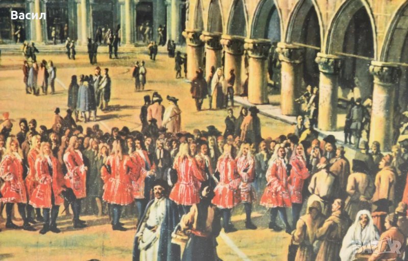 литография, пред Двореца на дожите във Венеция, от Лука Карлеварис В рамка зад стъкло. Състояние,отлично