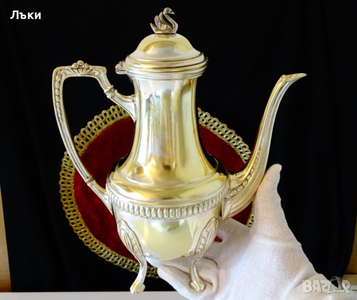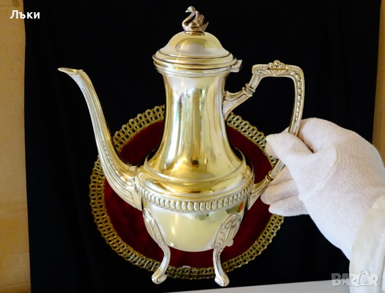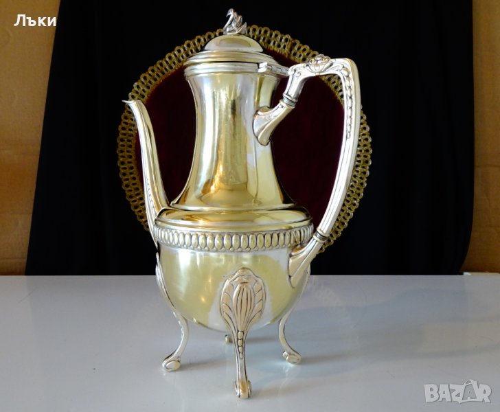дръжка,четири стабилни високи крачета,виртуозно завити в основата.Капака на