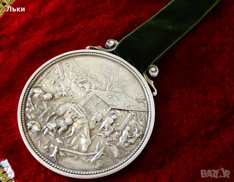 Западно Германски плакет,медал,пано с окачалка на фирмата SkS,маркиран.Плакета е ръчно изработен от 95% калай и 5% сребро,декориран с релефна картина Зима.Диаметър