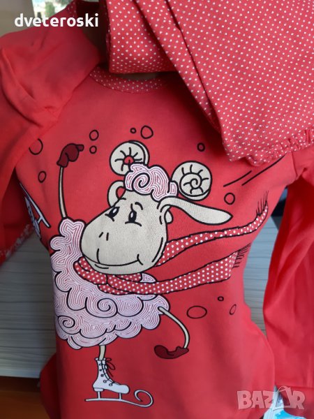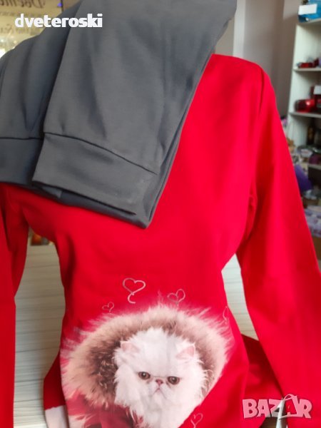 Червената пижама с пухкавото коте е на 32лв. Размер М