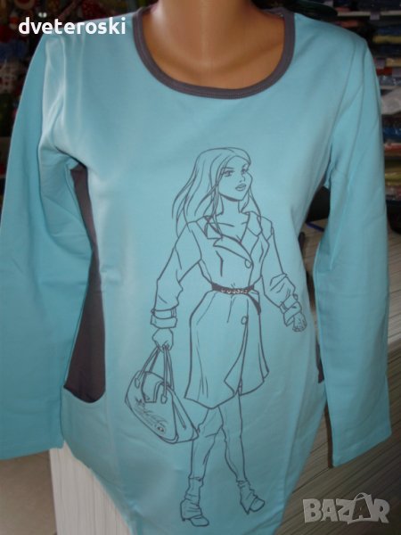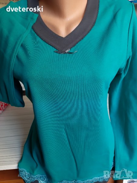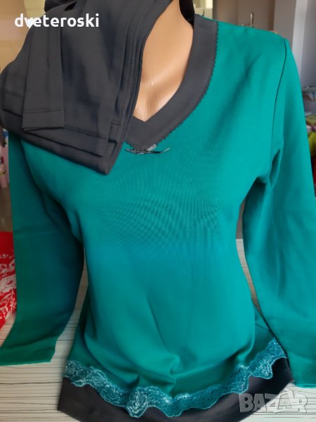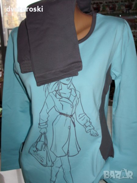 Зелената пижама с тъмно сиво долнище е на 30,00лв. представлява клин с блузон и става и за домашен комплект. Размер Л