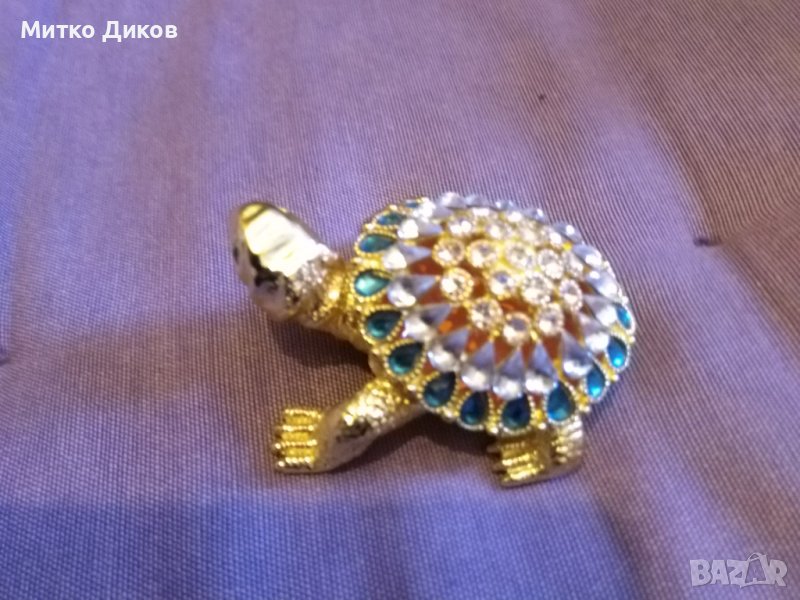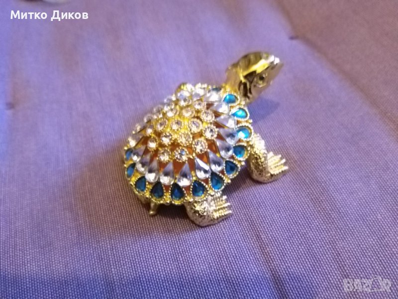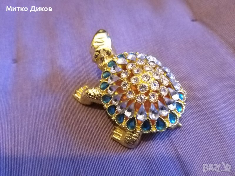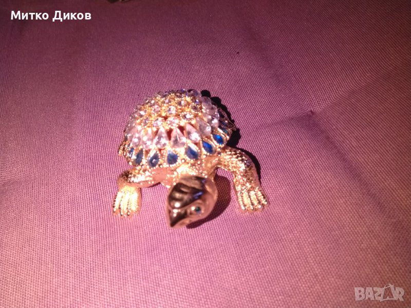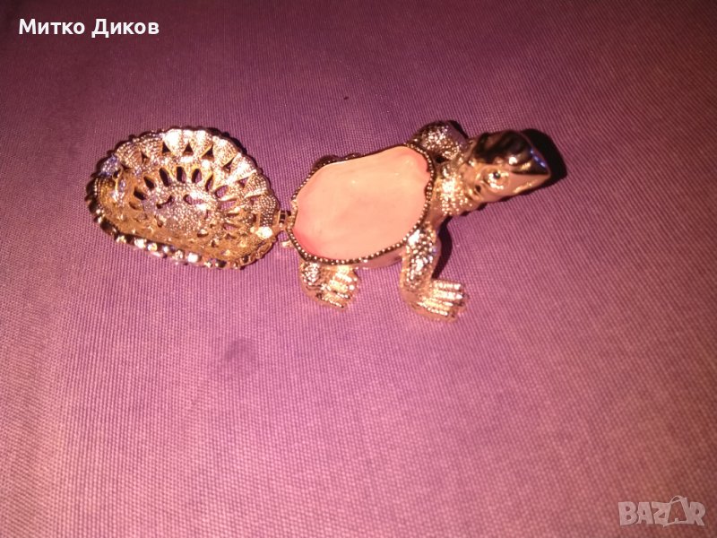 Костенурка- лукс кутия за бижута от метал инкрустирана с камъни 70х55мм и Н-30мм нова → Обява 39052255
