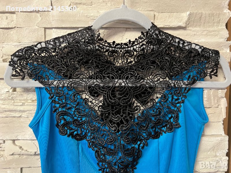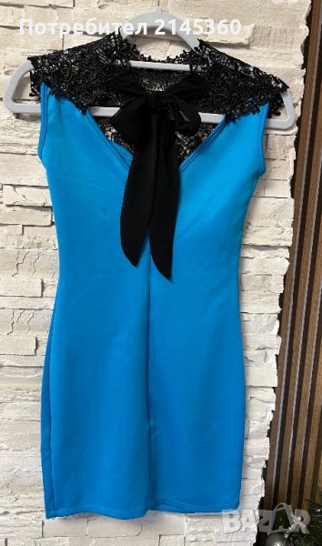 Много хубава рокля по тялото с ефектна дантела отпред и панделка на гръбчето,размер XS