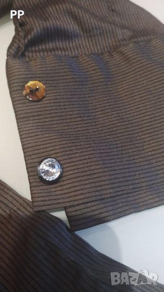 Много красива ризка по тялото с блестящи копчета отпред и на ръкавите. Отзад е със сатенена лентичка и се регулира като корсет по тялото. Материята е еластична, фина и приятна на допир. Не прозира. Отговаря на XXS. Произведено в Турция.