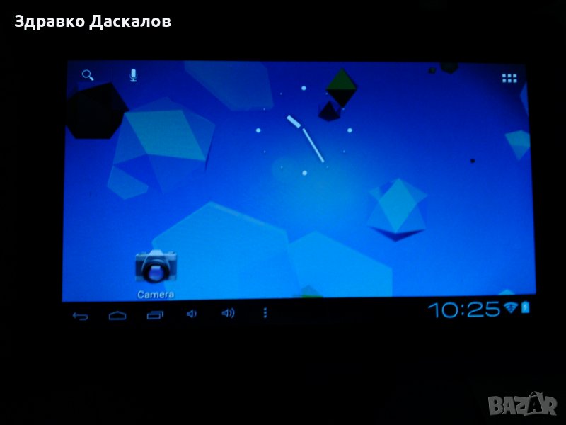 Таблетчето работи само на зарядно,явно батерията е за смяна.Много запзено,без пукнатини и драскотини.Андроид 4.0.4