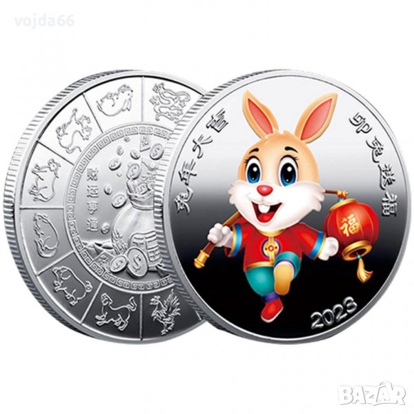 Монета/плакет"Годината на заека",идеален подарък за родените в годините на заека/1939,1951,1963,1975,1987,1999,2011г./и новородените през новата 2023г.Диаметър ф40,дебелина 3мм. в опаковка за монети.Идва с подаръчна торбичка.Налични по една бройка.