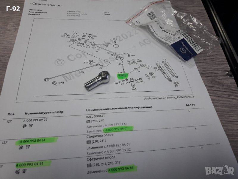 A0009930461**NEU** MERCEDES-BENZ**СВФЕРИЧЕН НАКРАЙНИК ЗА СИСТЕМАТА НА ГАЗТА**