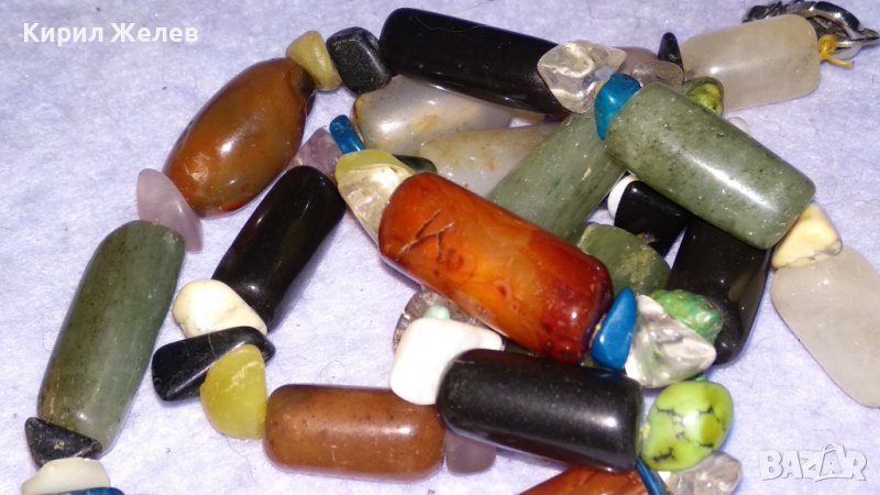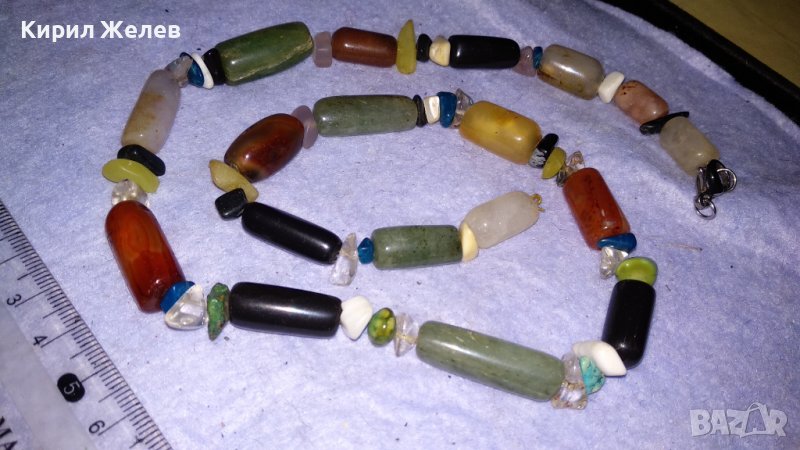РАЗКОШНА ХЕНД-МЕЙД РЕТРО АРТ ОГЪРЛИЦА КОЛИЕ НАТУРАЛНИ ПОЛУСКЪПОЦЕННИ ЮВЕЛИРНО ШЛИФОВАНИ КАМЪНИ 34529