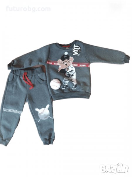 Ватиран комплект за момче с шита щампа на мече идеален за студените зимни дни