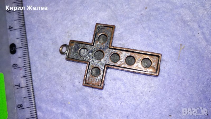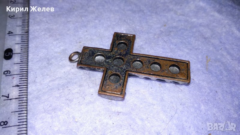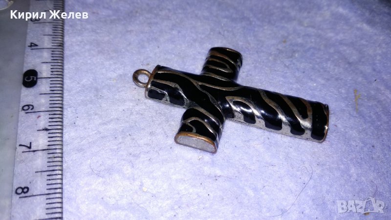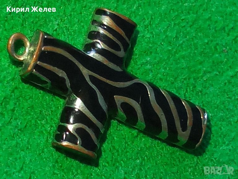 СТИЛНО СТАРО ПОСРЕБРЕНО МЕДНО АРТ КРЪСТЧЕ с ЕМАЙЛ 34571