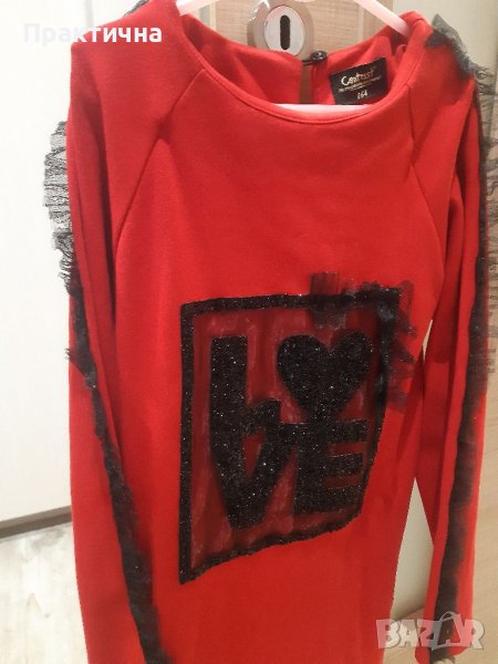Роклята е обличана 2 пъти, без никакви забележки. Стои по тялото, може и за туника да се ползва при желание. Размер 164.