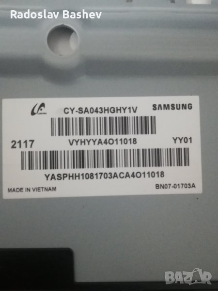 SAMSUNGUE-43AU9072 4K Ultra HD LED SMART TV -счупен дисплей, частите са проверени и са 100% работещи - Main boardBN41-02844A -140лв Power boardBN44-01109A-65лв Крачета нови-25лв Говорители 2бр-20лв Дистанционо оргинално-30лв Адаптер(модул) за CI CARD-25лв Панел-CY-SA043HGHY1V