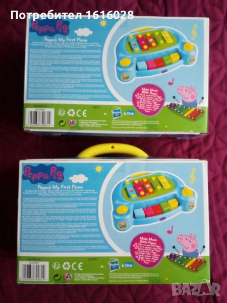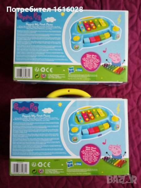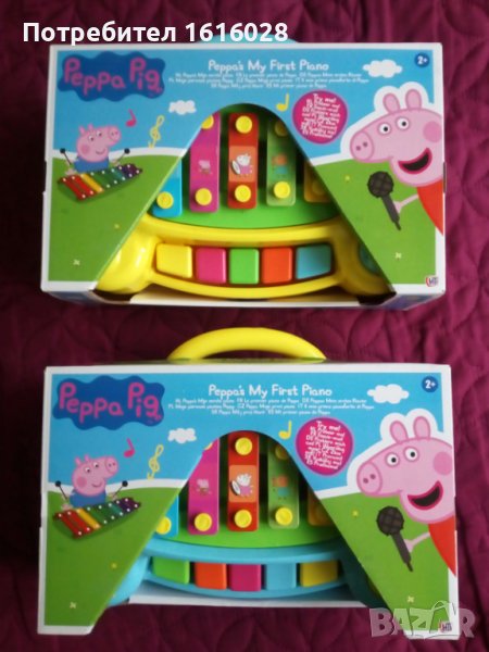Ново Детско пиано-ксилофон Peppa Pig.Налични 2 броя в синьо и жълто.ИСТИНСКА МУЗИКА - Създавайте истинска музика с Пепа и Джордж цял ден, всеки ден! Чудесно за малки деца и бебета, официалното Peppa Pig My First Piano възпроизвежда истински звуци и може да се използва за създаване на прости мелодии.ЛЕСНО ЗА ИЗПОЛЗВАНЕ - С 5 ярко оцветени и лесни за натискане бутона, пианото Peppa Pig може да се използва за произвеждане на звуци. Освен това в играчката е включено пласмасова пръчица - чукче с което се удря по ксилофона и произвежда звуци.УЧЕТЕ ЧРЕЗ ИГРА - HTI Peppa Pig My First Piano насърчава въображението и креативността. Това е задължително за всеки малък музикален фен. Идеално за детското развитие, пианото Peppa Pig ще осигури часове забавление за дълго време.СПЕЦИФИКАЦИИ НА ПРОДУКТА: Съдържа 1x 2в1 пиано Peppa Pig & Glockenspiel. Не изисква батерии.Приблизителни размери: 8cm / 25cm /16cm.Подходящ за деца на възраст 2 + годинки.Направен е от безопасни, нетоксични съставки тествани по най-високия стандарт CE в Обединеното кралство, за да се гарантира безопасността на вашите деца.