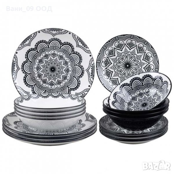 Порцеланов сервиз за хранене от 16 части с декорация в бяло и черно
