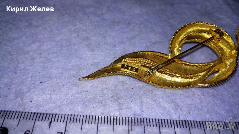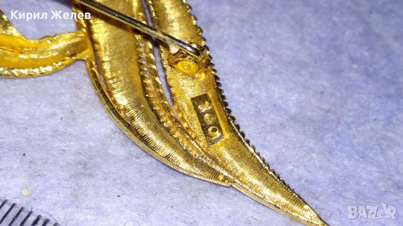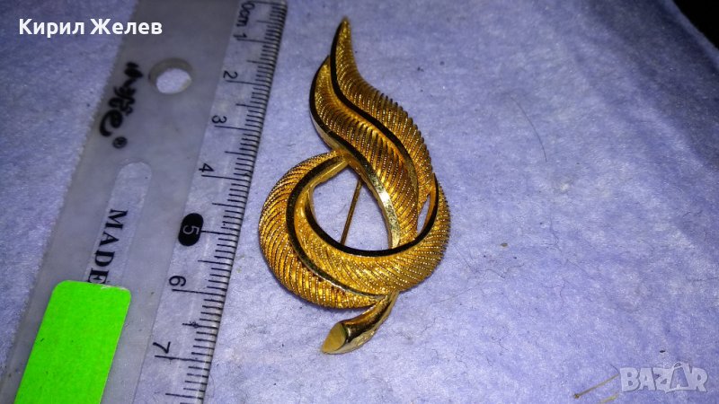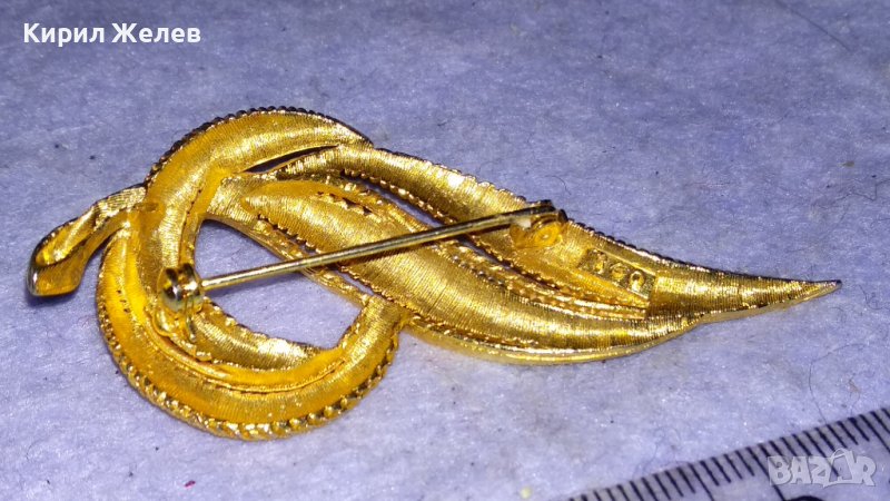 ПРЕКРАСНА АЖУРНА с ПОЗЛАТА СТИЛИЗИРАНА МАРКОВА АРТ БРОШКА от БРАГОРОДНА НЕРЪЖДАЕМА СТОМАНА 33128