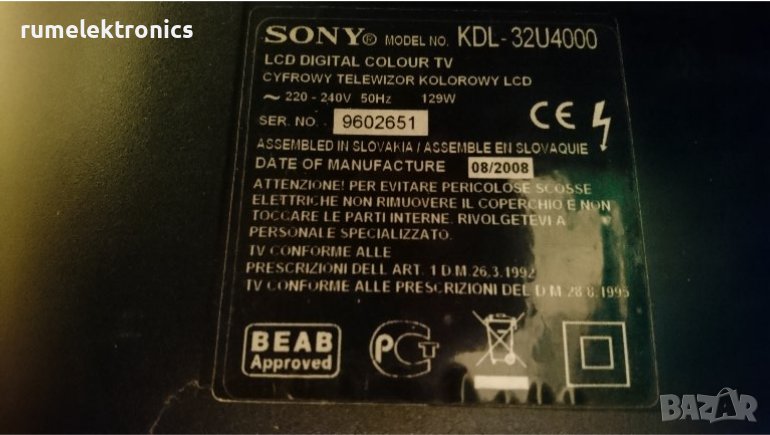 SONY KDL-32U4000 на части, снимка 1 - Части и Платки - 39073320 SONY KDL-32U4000 на части, снимка 2 - Части и Платки - 39073320 SONY KDL-32U4000 на части, снимка 3 - Части и Платки - 39073320 SONY KDL-32U4000 на части, снимка 4 - Части и Платки - 39073320 SONY KDL-32U4000 на части, снимка 5 - Части и Платки - 39073320 SONY KDL-32U4000 на части, снимка 6 - Части и Платки - 39073320 SONY KDL-32U4000 на части, снимка 7 - Части и Платки - 39073320 1/7