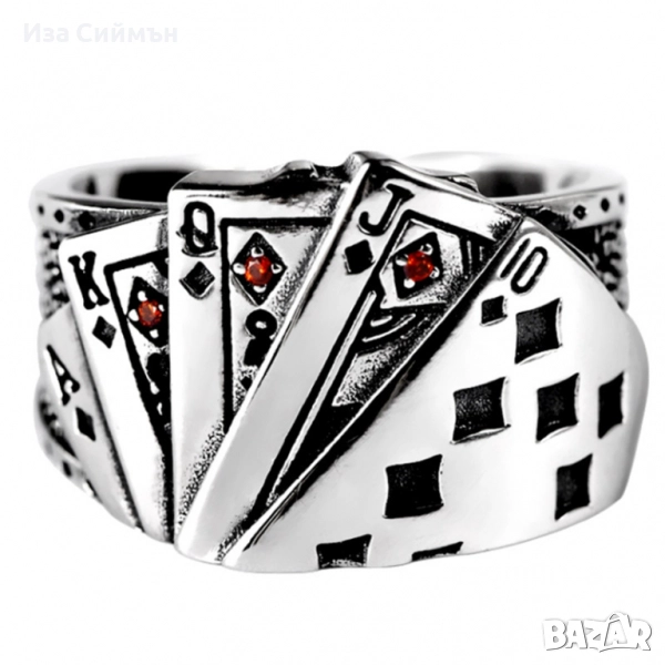 Сребърен покер пръстен с два рубина, универсален размер. два модела - 1 снимки 1, 2 и 3