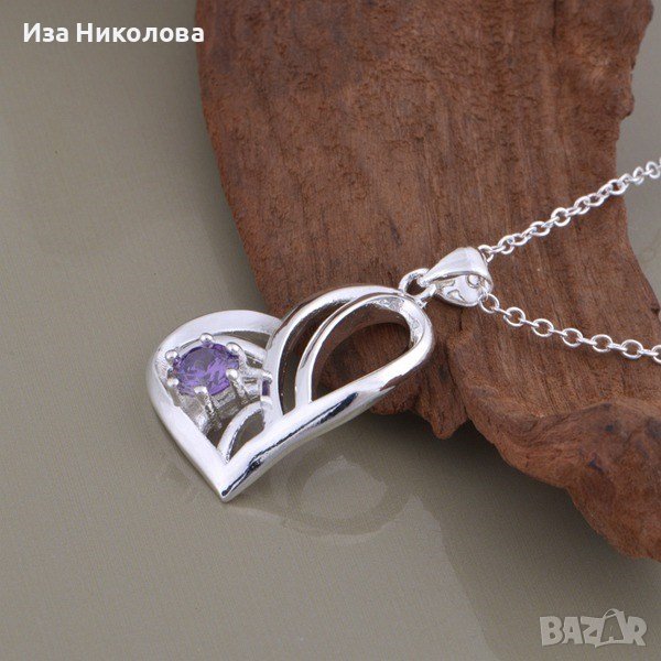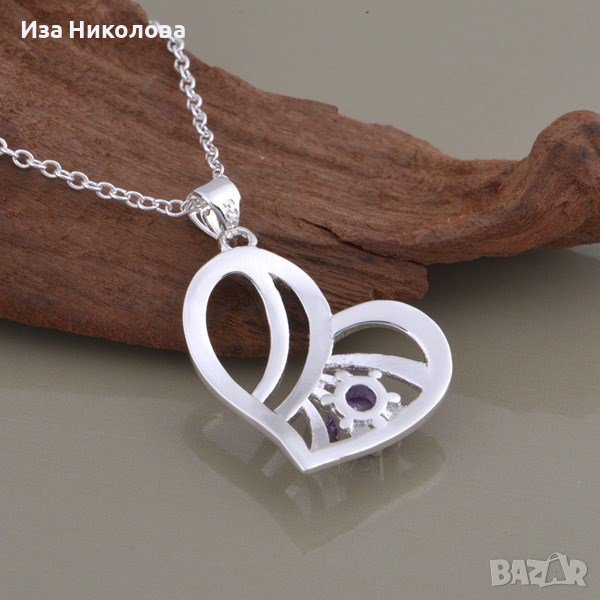 Сребърно колие сърце с аметист → Обява 39075446