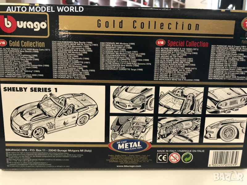 BBURAGO нова метална колекционерска количка.SHELBY COBRA 1998г.1:18 → Обява 39076247