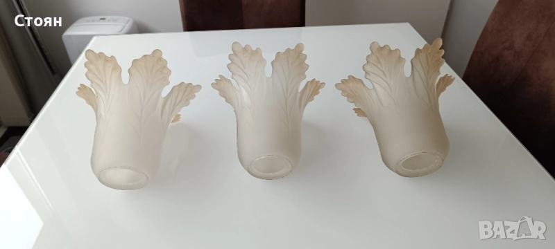 3 броя стъклени Чашки за полилей в отлично състояние. Цената е за трите броя.