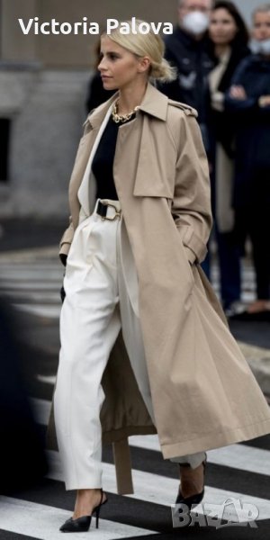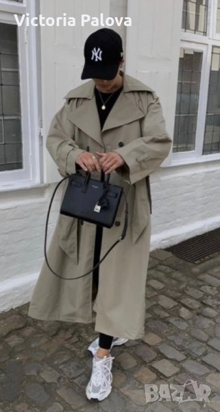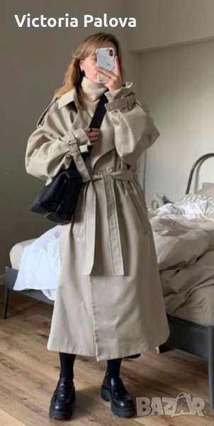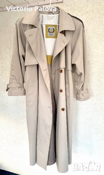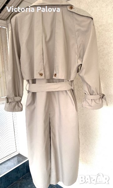 Супер красив “правилен” тренч,със всички детайли.удобен и комфортен,дреха,станала абсолютна необходимост за подчертаване на стил,елегантност като “трети елемент” в облеклото.европейски размер 36-38,обаче е доста голям,овърсайзен:ГО-62см,дължина-115-116см,ръкав от мишница-40см,има подплънки за подсилване на линия на рамото.