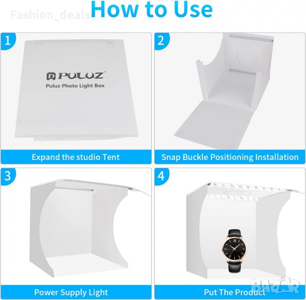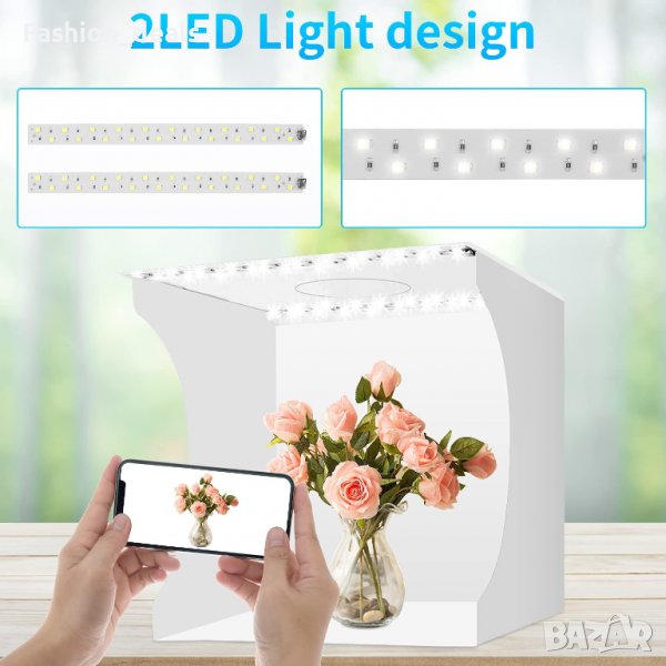 Размерът на палатката за фотозаснемане е 23 x 23 см, сгъваем размер: 23 x 23 x 1,5 см