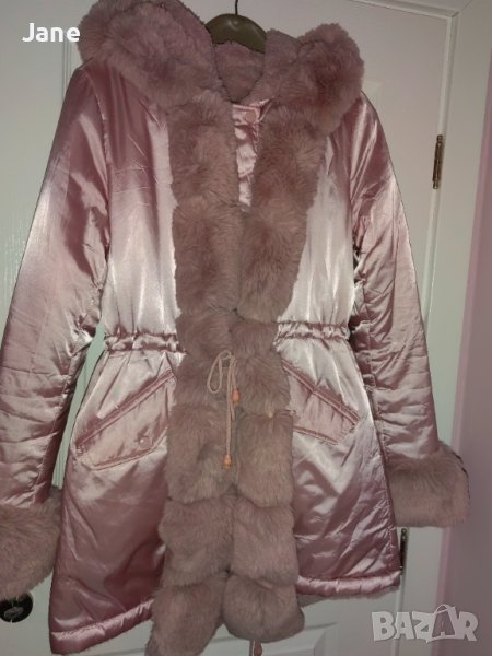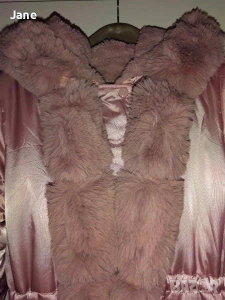 Двулицево зимно яке размер М , цвят пепел от рози , лъскава материя , непромокаема , дължина 80 см , шир. подмишници - 48 см , дълж. ръкав - 65 см , цена 41 евро